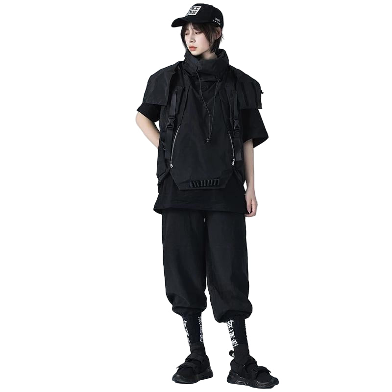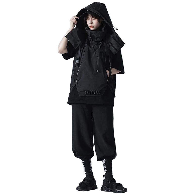 Built with a tactical streetwear feel, this piece uses a crisp polyester shell that stays light while holding its shape. The hood has a layered construction with storm panels and a tall collar that tightens smoothly, giving the upper silhouette a structured look.