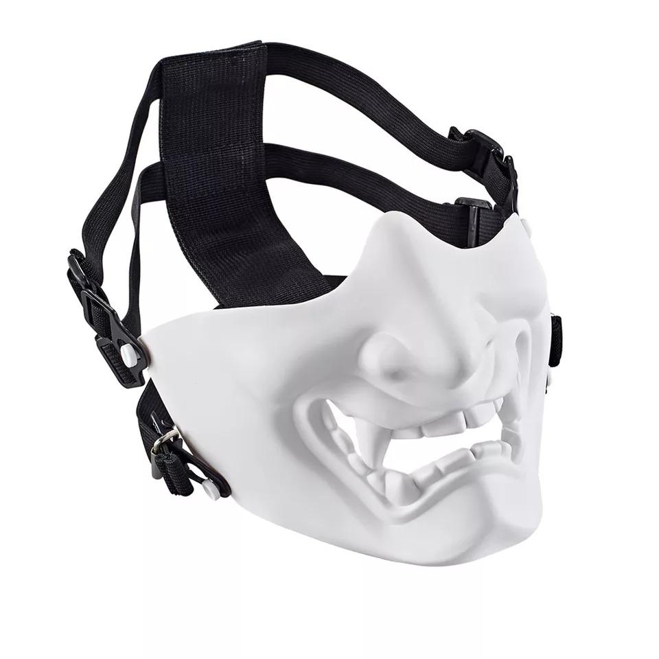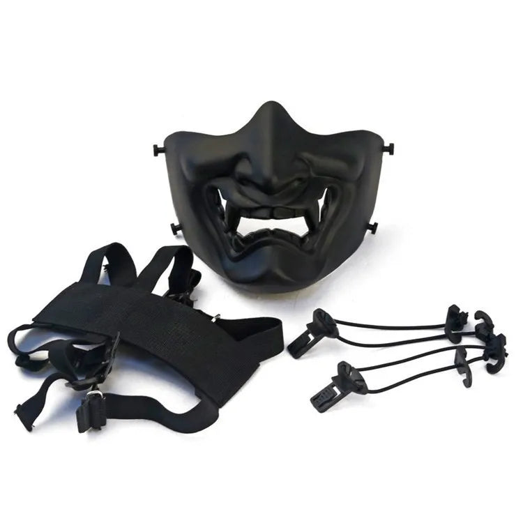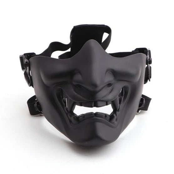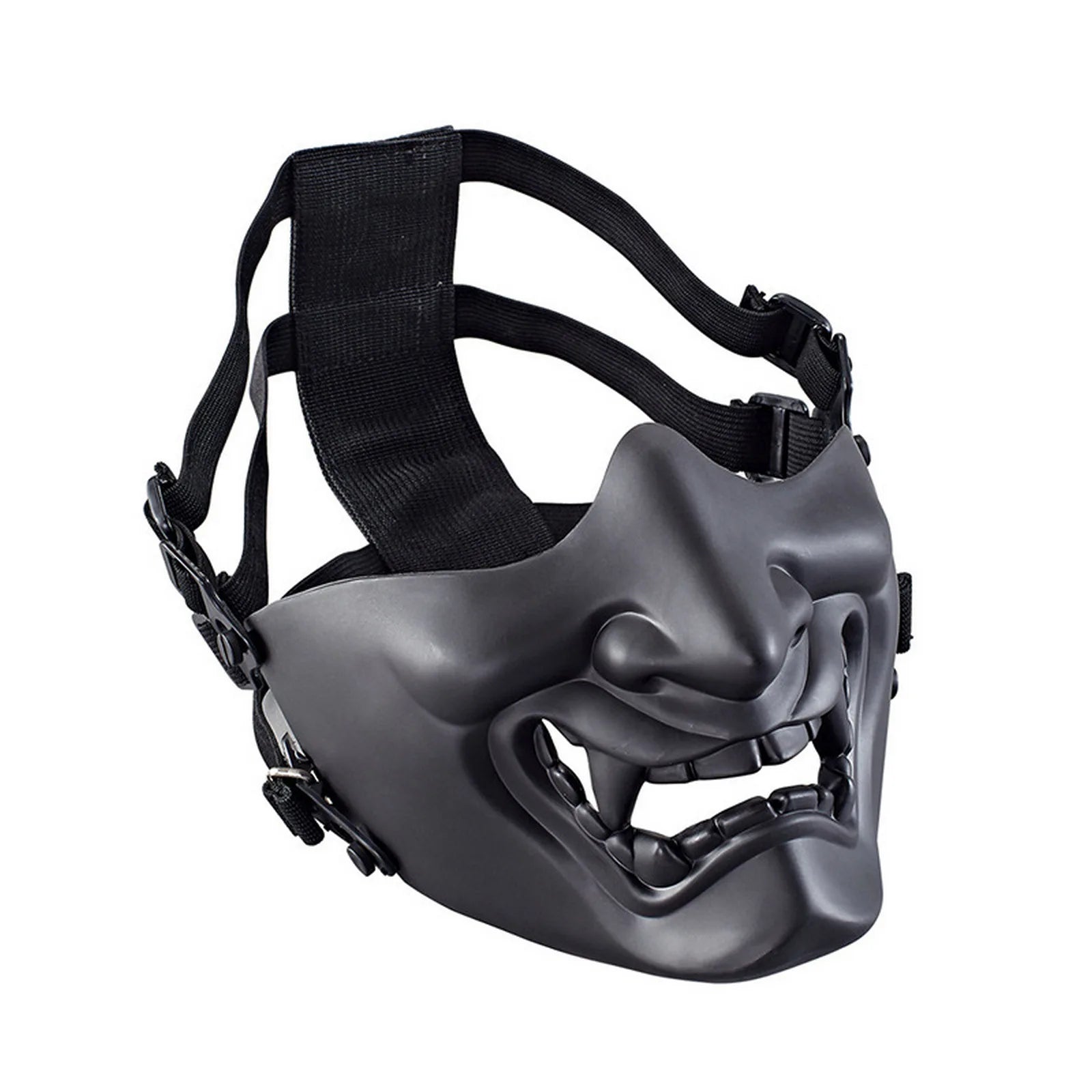 The lower-face design channels traditional Japanese demon aesthetics, making it perfect for streetwear, cosplay, or dark art enthusiasts. Adjustable head straps ensure a secure, comfortable fit for extended wear.