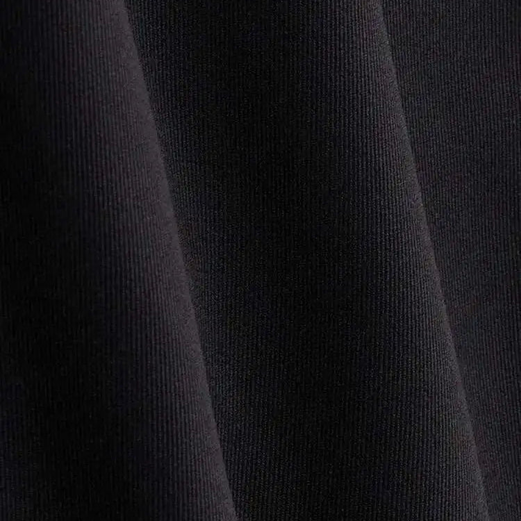 Fabric: Black cotton poplin base with white mesh panels, trimmed in micro-ruffled black edges.