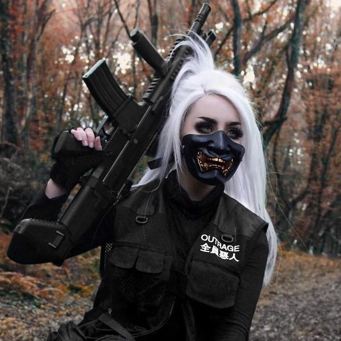 Step into the mystic world of Japanese folklore with this exquisitely crafted Hannya half mask. Made from high-quality resin and nylon, this lightweight yet durable mask covers the lower half of your face with an intense, haunting expression inspired by the legendary vengeful spirit, Hannya.