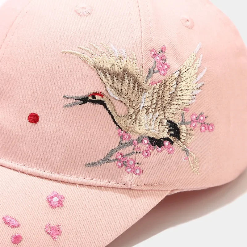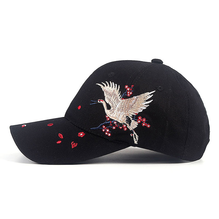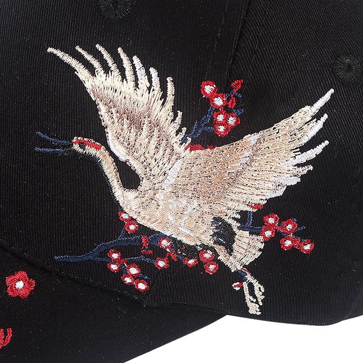 A standout blend of traditional Japanese motifs and street-ready design, this cotton cap features a beautifully embroidered crane surrounded by floral elements — a timeless symbol of grace, longevity, and renewal.