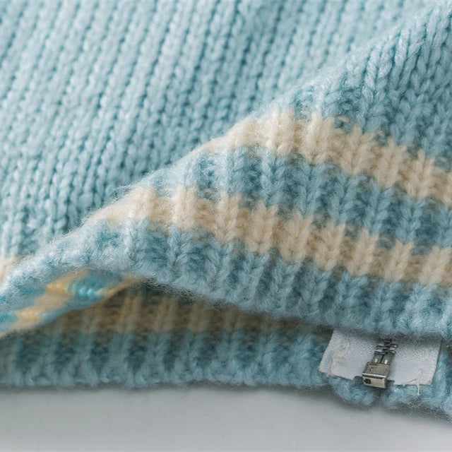 Fabric: Chunky-gauge knit with plush hand and dense stitch definition; rib trims for structural hold.