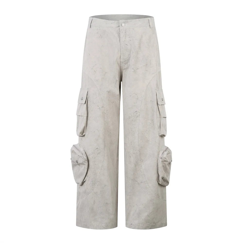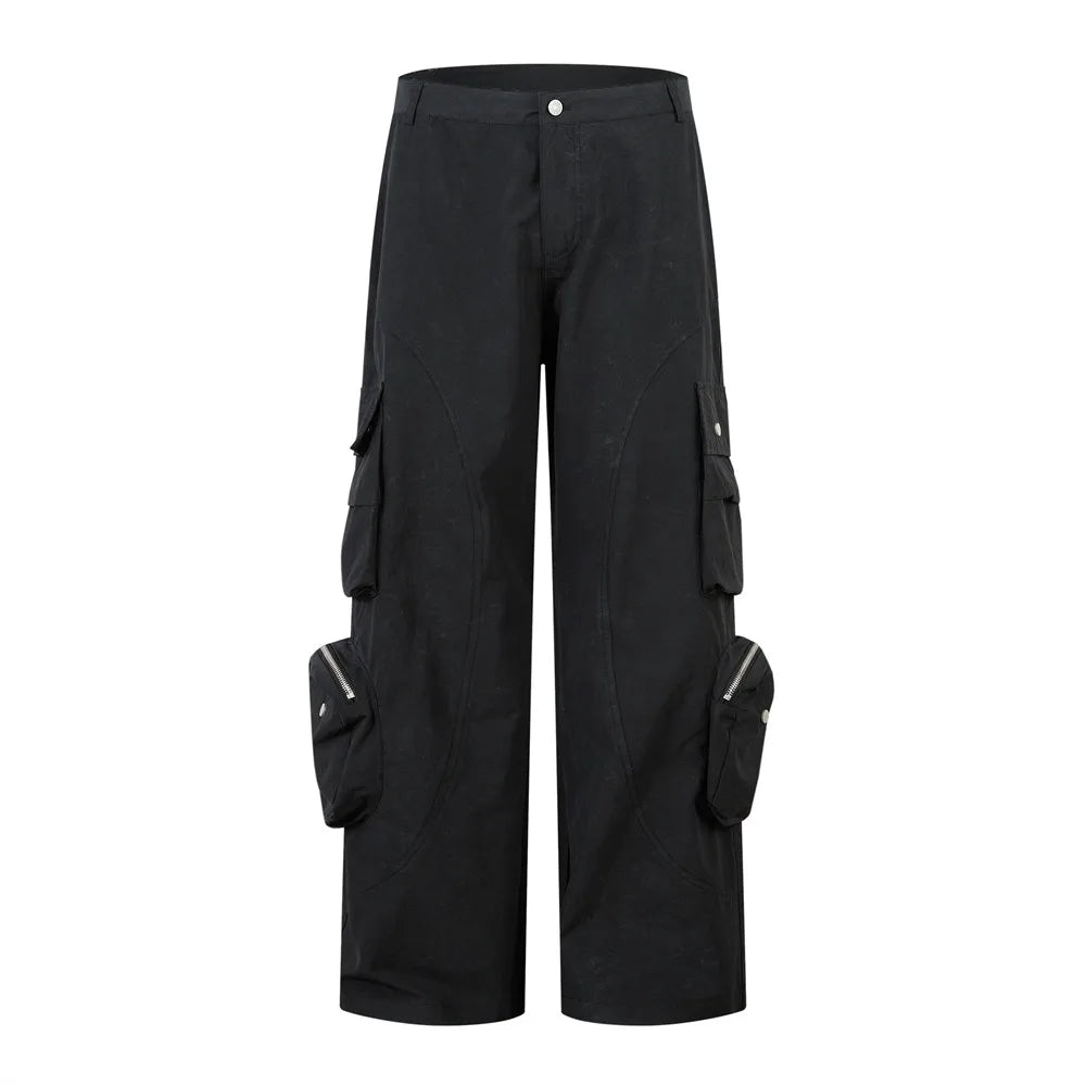 Built with architectural intent and utilitarian strength, these wide-leg cargo pants blend form and function with an unmistakable edge. Constructed from a midweight cotton canvas, they feature oversized 3D pockets, functional zippers, and rounded panel seams that contour the silhouette with clean symmetry.