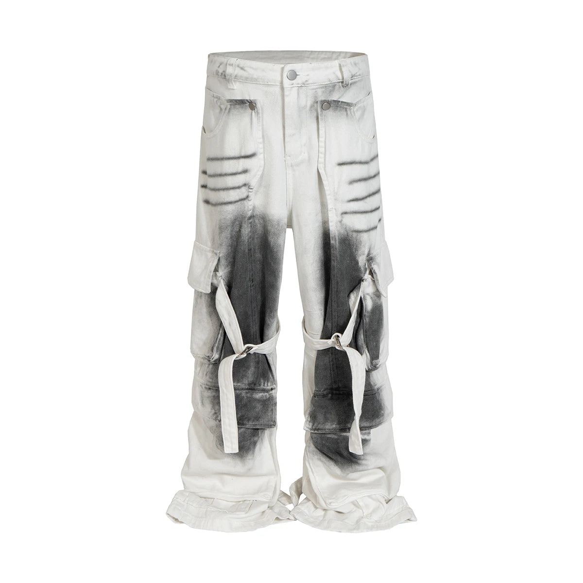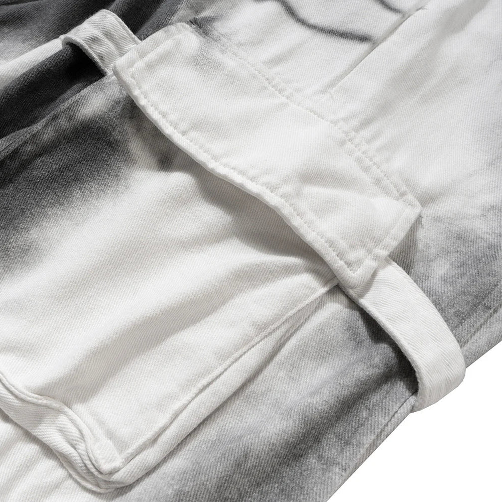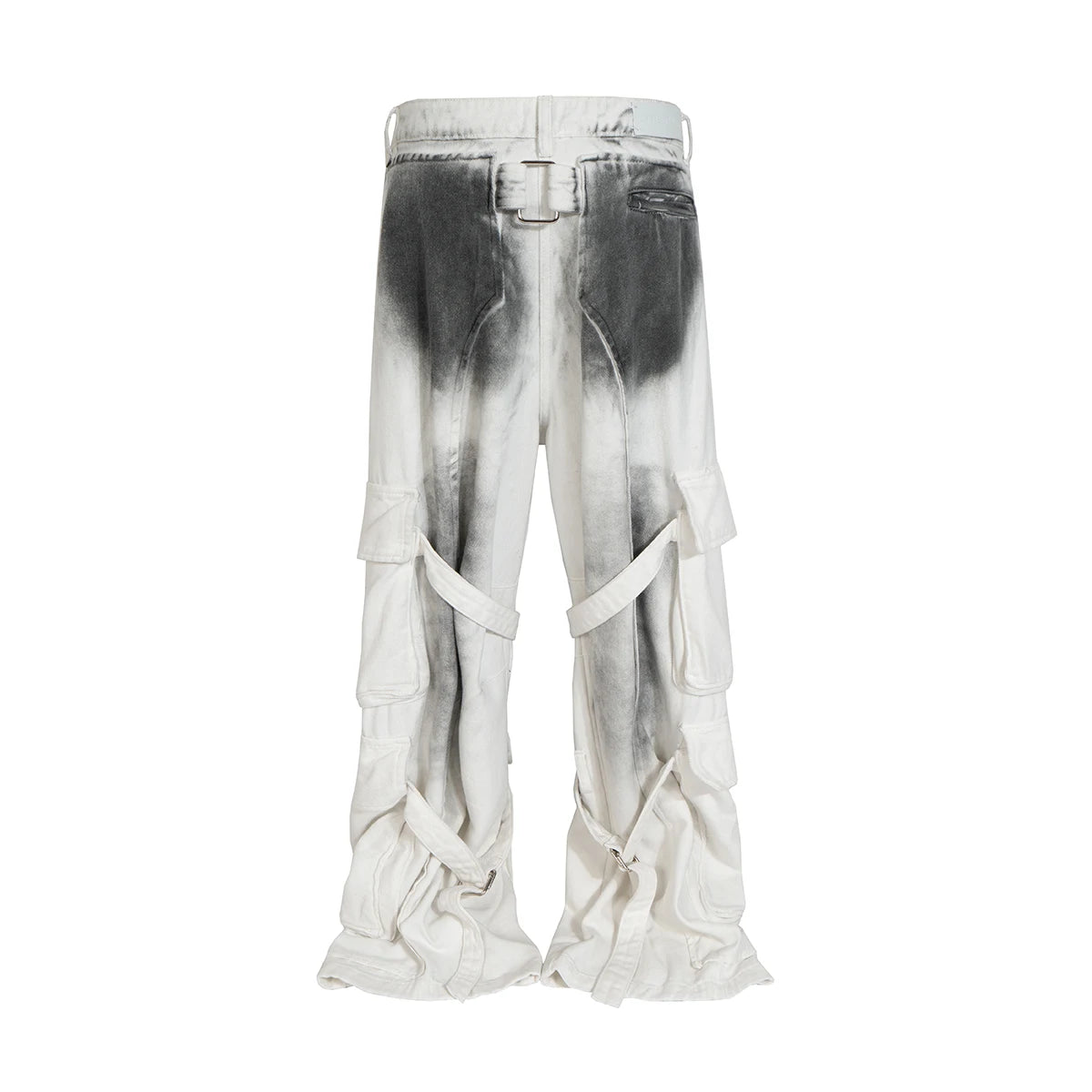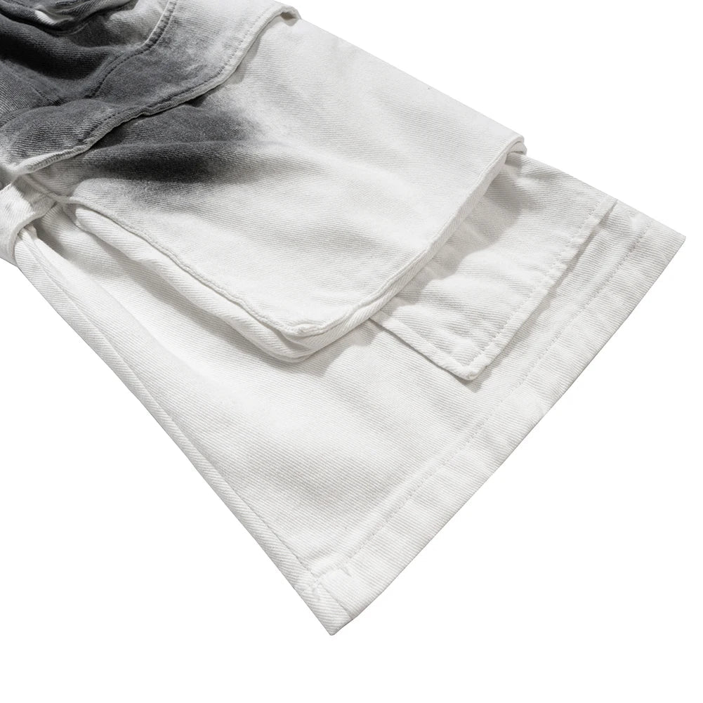 On the back, the gradient continues with matching flap cargo pockets and cross leg strap detailing. Subtle stitching and clean seam placement let the fade and the fit carry the visual weight.