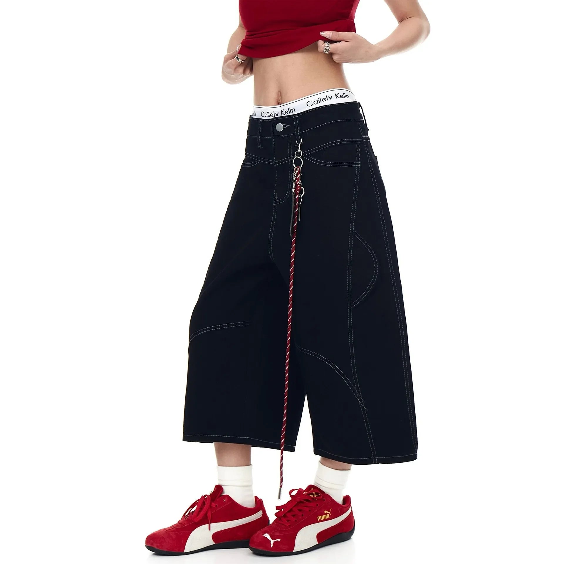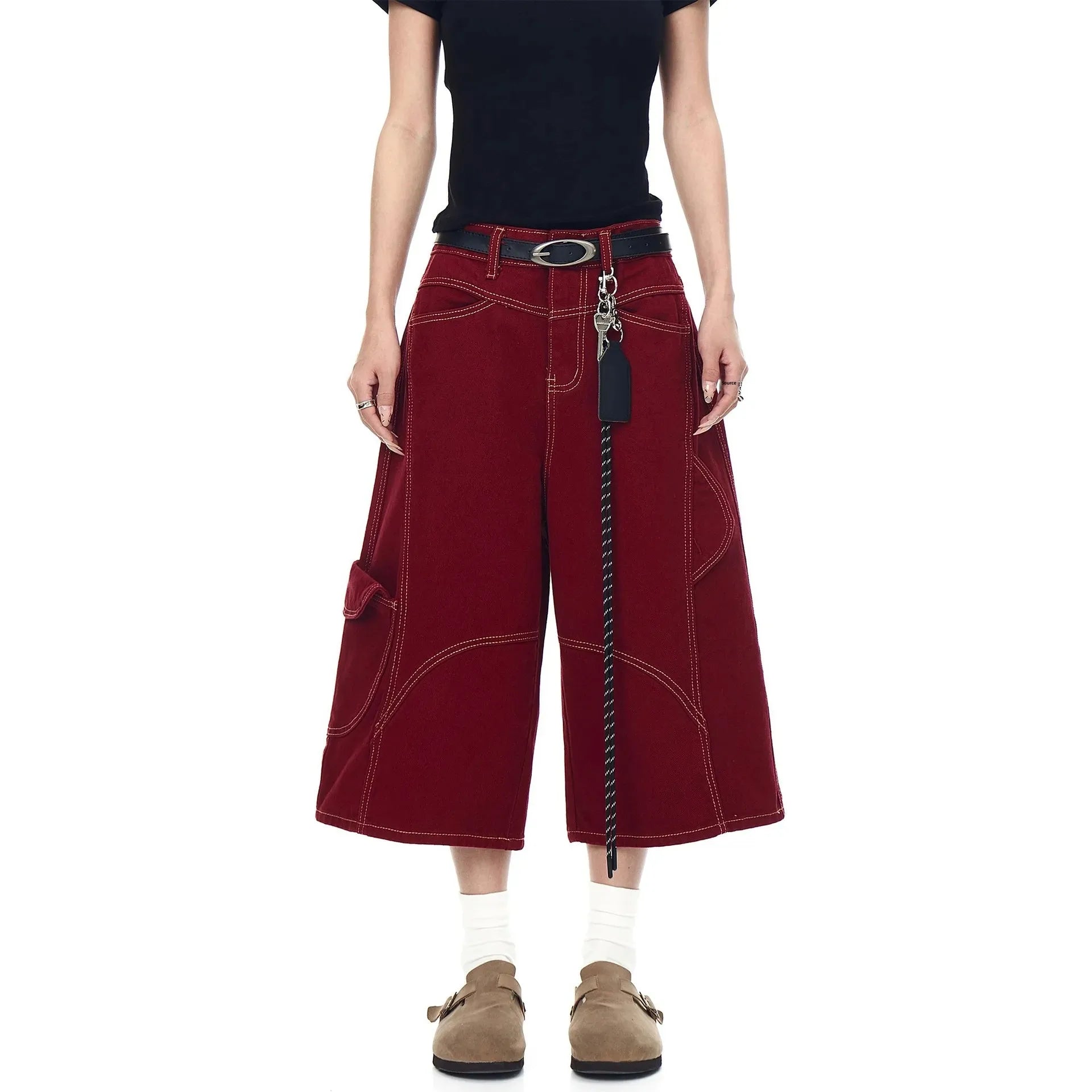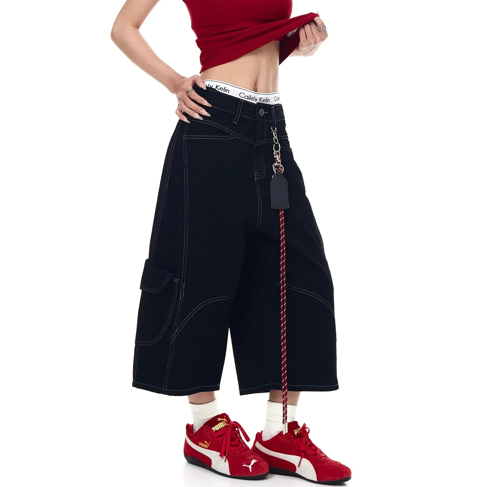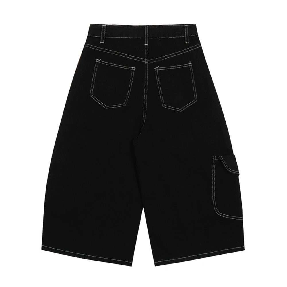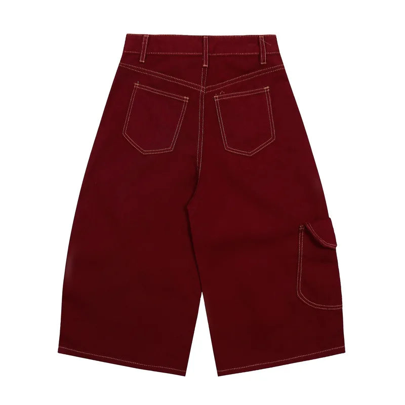 Cut from heavyweight cotton denim with a dense twill weave, these wide-leg cargo shorts hold their form with architectural clarity. Curved panel seams sculpt the silhouette, reinforced by clean, high-contrast topstitching that traces every line.