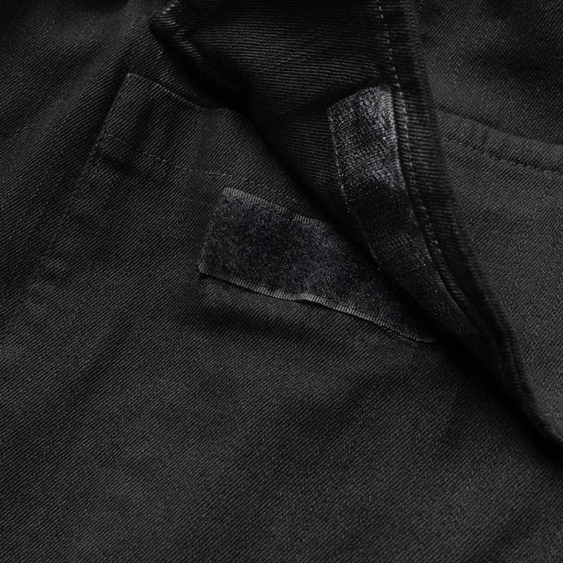 Fabric: Made from midweight cotton twill with a structured, garment-washed surface