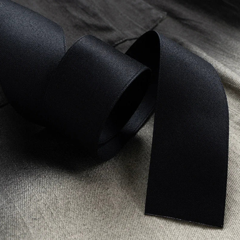 The raw hem and exposed rear nylon strap introduce a subtle edge, while tonal stitching maintains a minimal finish. At the back, two additional patch pockets, one with a flap, enhance utility without disrupting the clean silhouette.