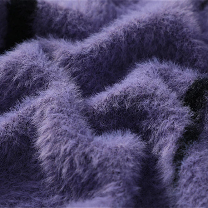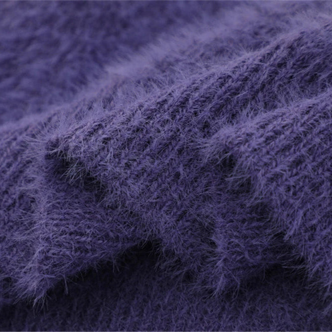 This sweater blends softness and edge in a way that doesn’t compromise either. Woven from heavyweight brushed yarn with a deep pile loft, it mimics mohair in texture while holding structure, remaining warm, tactile, and visually dense.