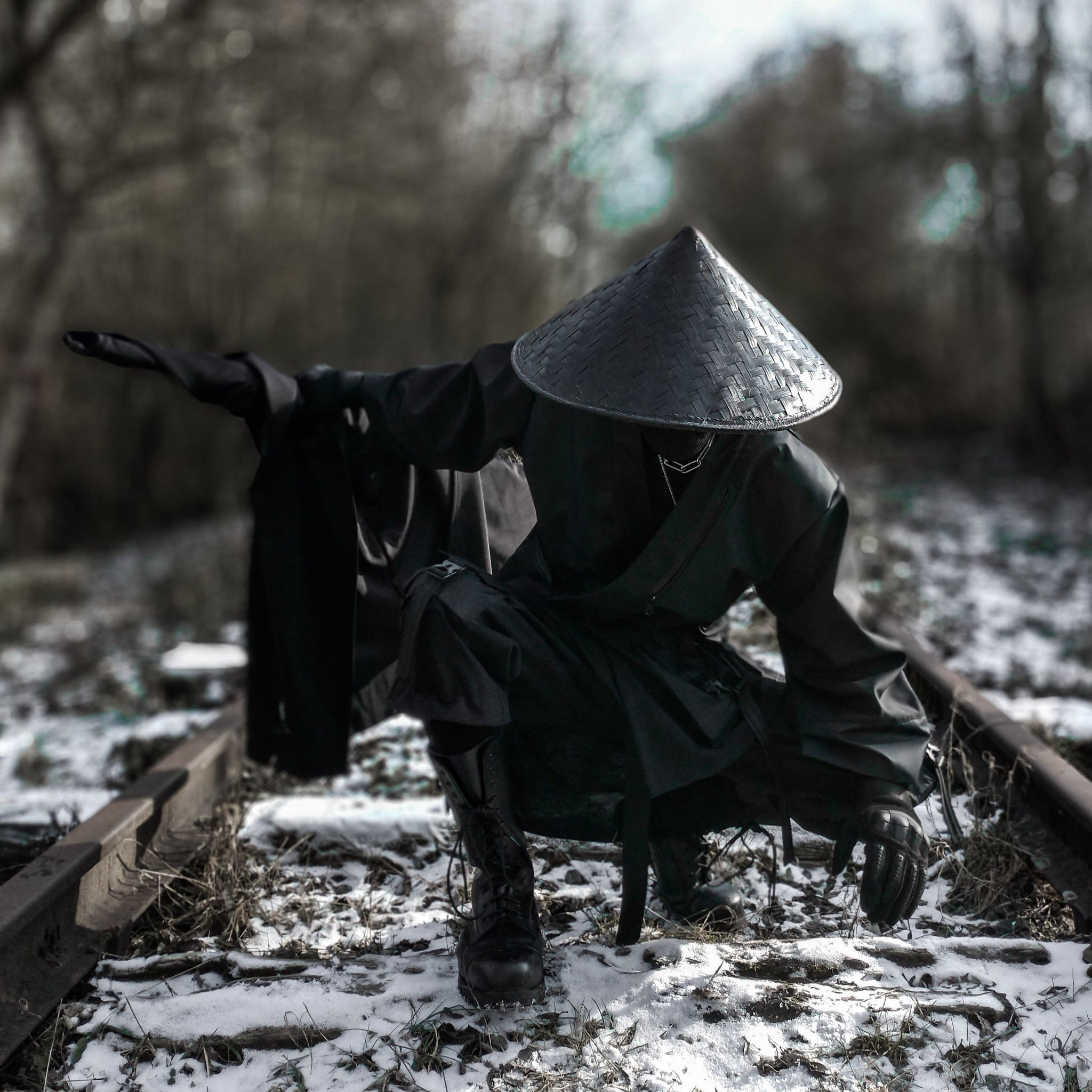 Walk the line between tradition and rebellion. This handcrafted bamboo kasa channels the spirit of the lone samurai, stealthy, sharp, and unapologetically bold. Coated in matte black with a wide 16.5" brim, it’s built for shade, statement, and street presence.