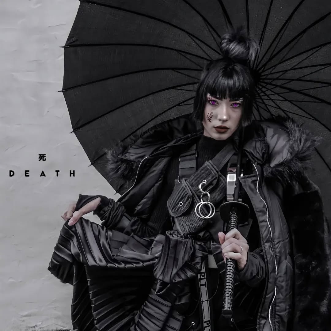 Inspired by the quiet precision of a shinobi, this design brings together tactical function and streetwear style. The matte black canopy opens with a single motion, while the handle mimics the grip of a katana: wrapped, balanced, and ready.